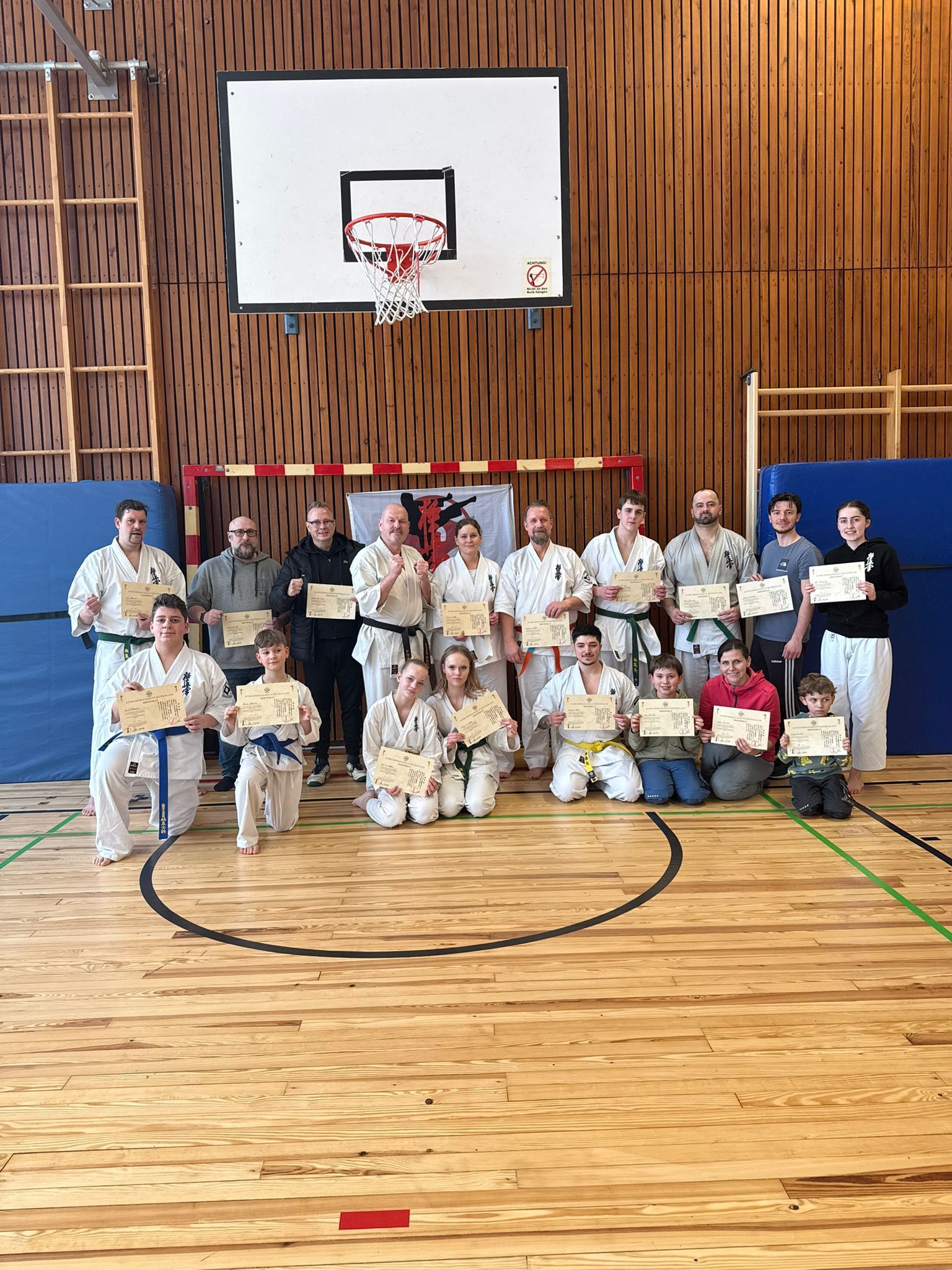 Gegeben wurde alles und nach viel Schweiß und dem folgenden Muskelkater waren alle glücklich vom 10. bis 3. Kyu ihre Urkunden in den Händen zu halten.