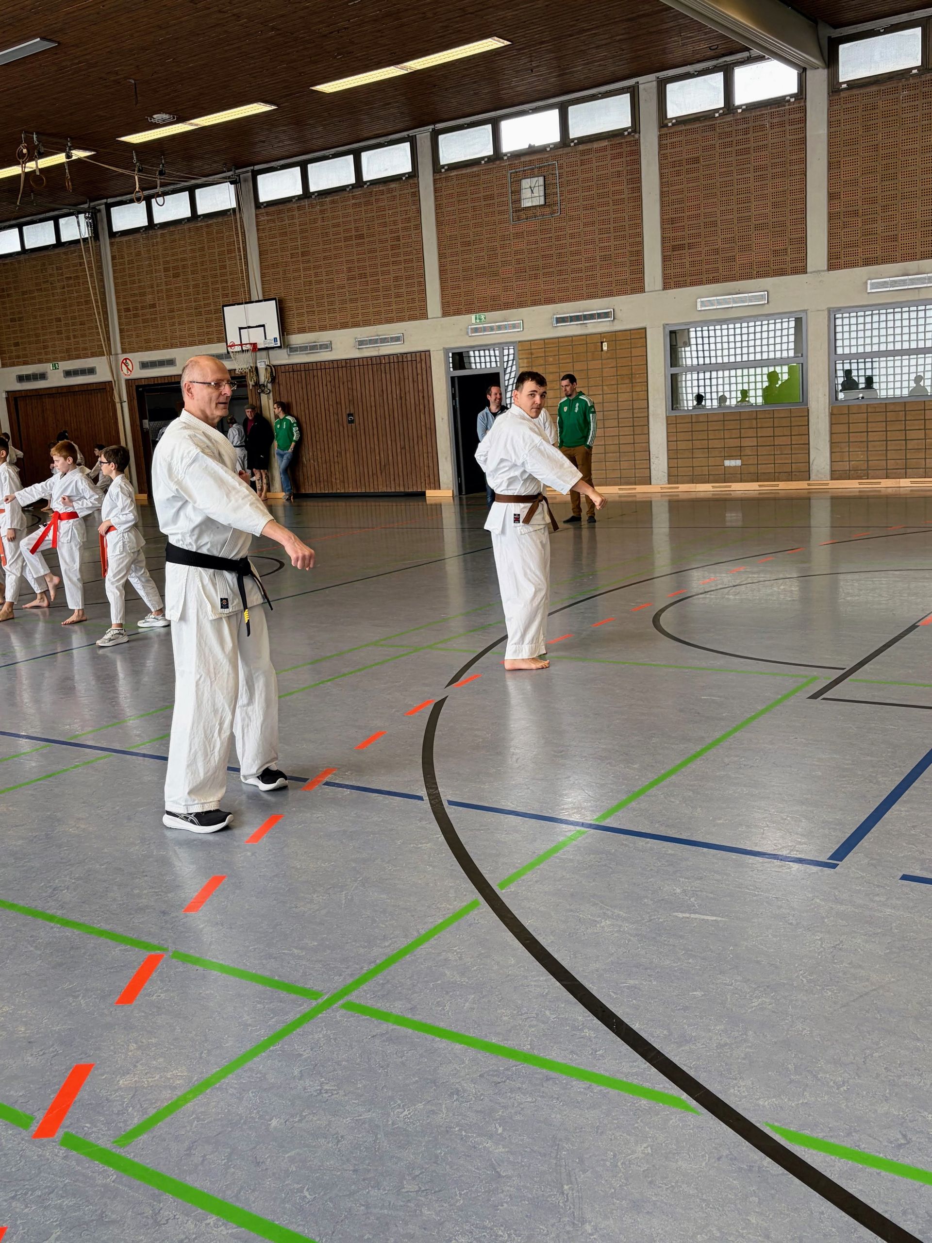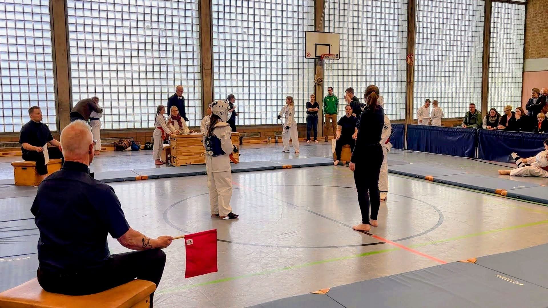 Gleichzeitig bot sich für die frisch ausgebildeten Kampfrichter aus Ahaus und Südlohn die Gelegenheit, ihr theoretisches Wissen erstmals praktisch anzuwenden. Auch wenn Shihan Werner an der einen oder anderen Stelle unterstützend eingreifen musste, zeigten alle Beteiligten große Konzentration und Engagement.