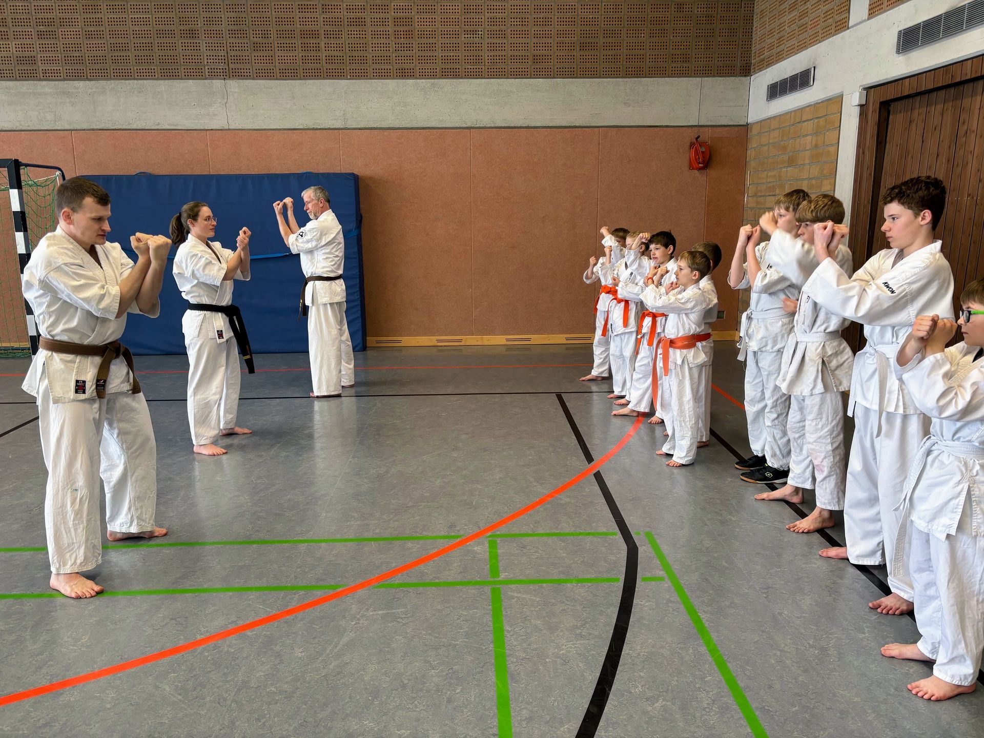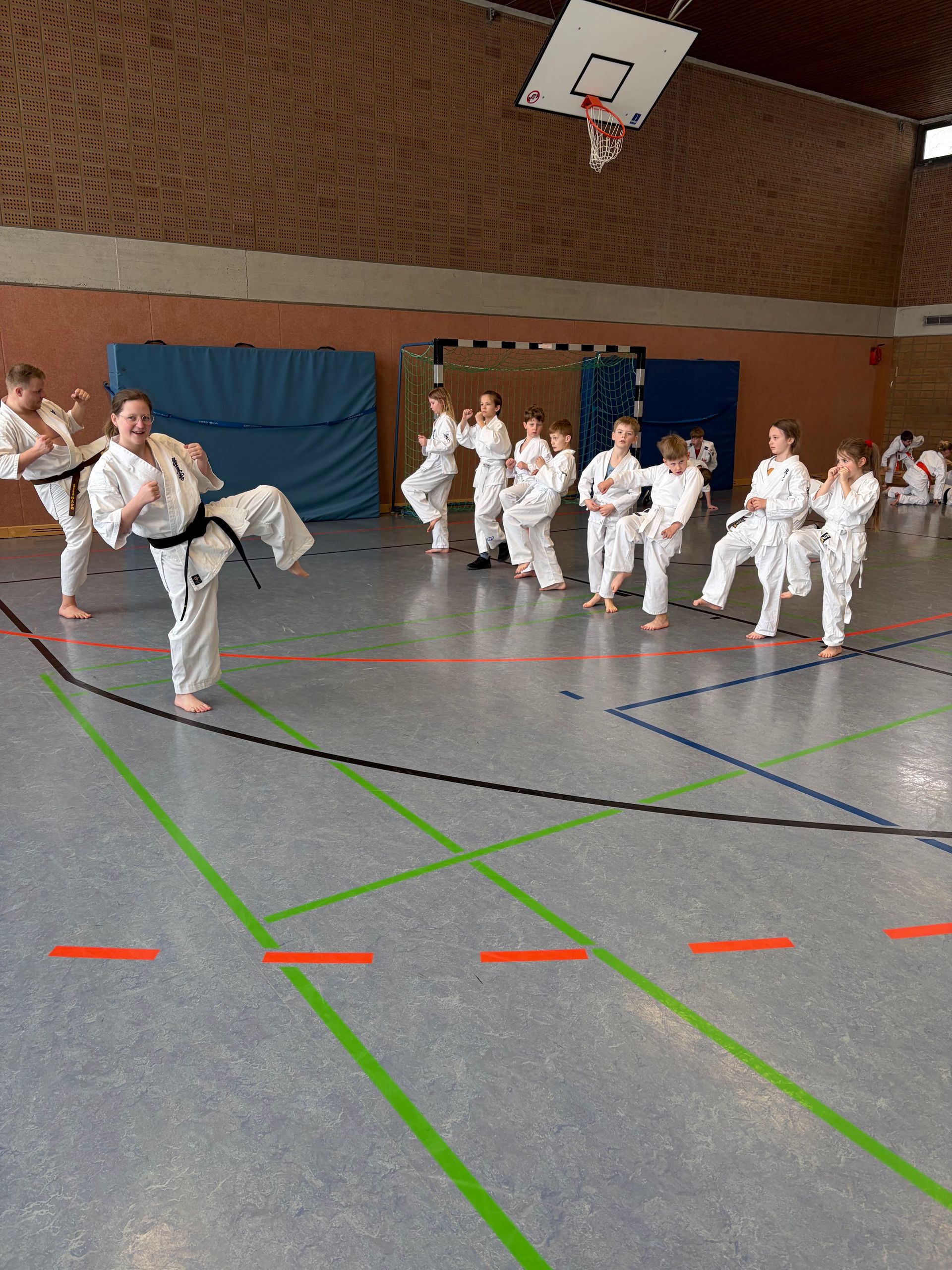 Zunächst lag der Fokus auf dem Kihon – den Grundtechniken –, abgestimmt auf die jeweiligen Kyu-Grade der Teilnehmer. Darauf aufbauend wurde intensiv an Katas gearbeitet, bei denen die Kinder ihre Technik, Präzision und Konzentration weiterentwickeln konnten.