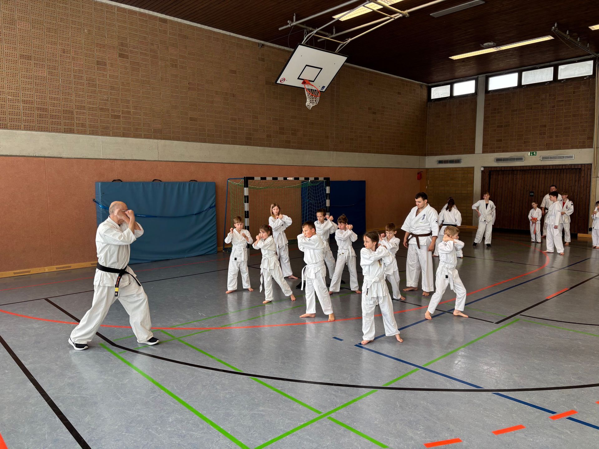 Nach der Begrüßung durch Shihan Werner Efkemann startete das Training mit einem gemeinsamen Aufwärmen, das direkt für eine motivierte und konzentrierte Atmosphäre sorgte. Im Anschluss wurden die Kinder in verschiedene Gruppen eingeteilt, die unter wechselnder Anleitung erfahrener Senpais, Senseis und des Shihan trainierten.